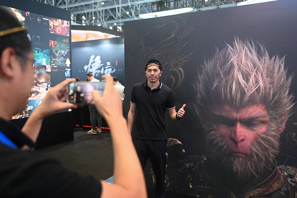 2024年9月25日,觀(guān)眾在第三屆全球數(shù)字貿(mào)易博覽會(huì)的游戲科學(xué)展區(qū)打卡。新華社記者 黃宗治 攝