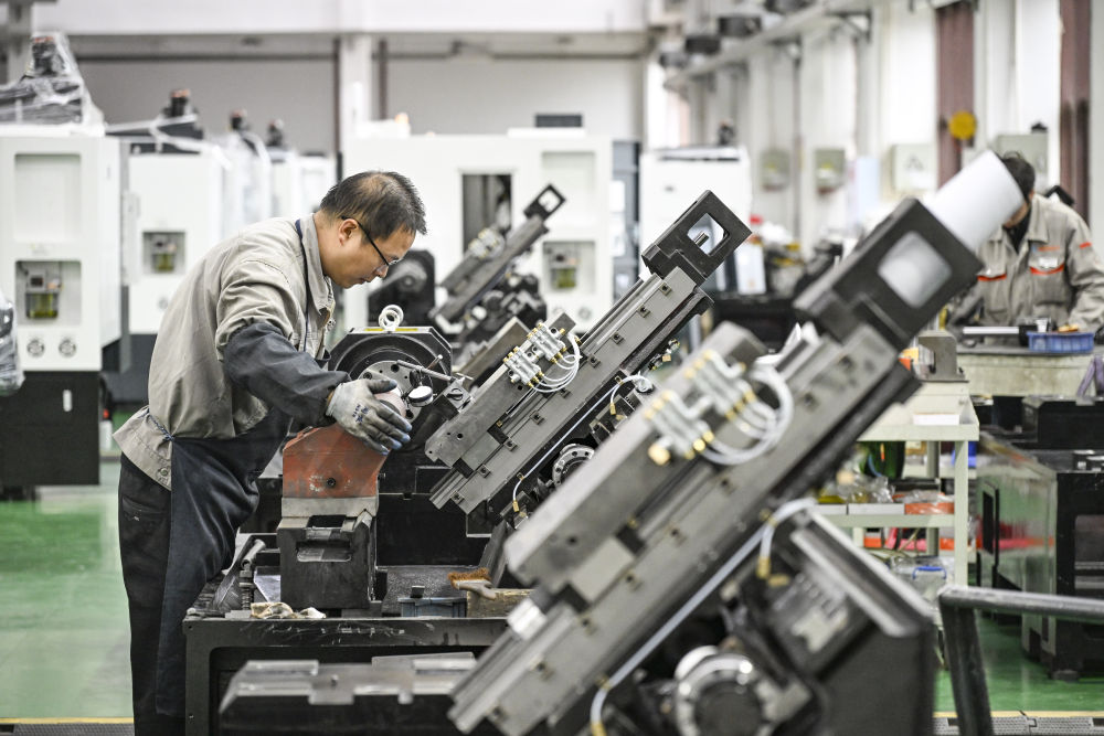 2月22日,工人在重慶宏鋼數(shù)控機(jī)床有限公司總裝車(chē)間作業(yè)。新華社記者 王全超 攝
