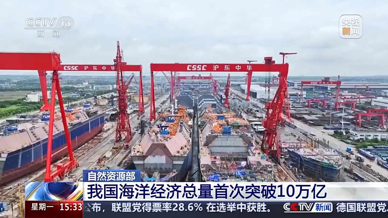 自然資源部今天(24日)發(fā)布《2024年中國海洋經(jīng)濟(jì)統(tǒng)計公報》,《公報》顯示,2024年我國海洋經(jīng)濟(jì)總量再上新臺階,首次突破10萬億。