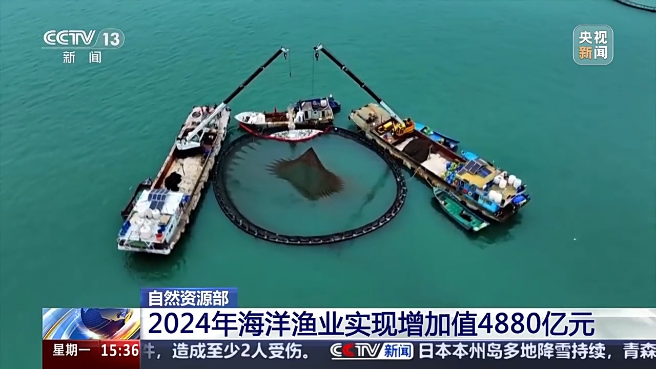 2024年,海洋水產(chǎn)品供給能力不斷提升。隨著海上養(yǎng)殖生產(chǎn)集群加快形成,智慧漁業(yè)蓬勃發(fā)展,“藍(lán)色糧倉”建設(shè)取得積極進(jìn)展,全年海洋漁業(yè)實現(xiàn)增加值4880億元,比上年增長4.0%,2024年海水資源利用規(guī)模不斷增加,全國海水淡化產(chǎn)量超4億噸,工業(yè)冷卻海水用量超1800億噸。