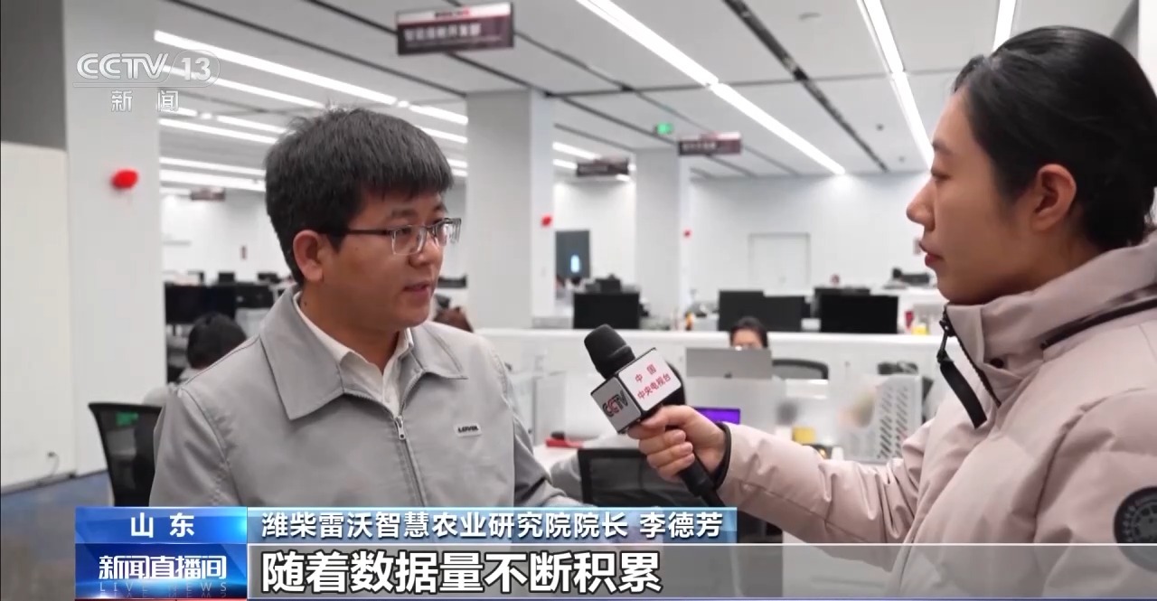 濰柴雷沃智慧農(nóng)業(yè)研究院院長 李德芳:實際上農(nóng)機變成了一個可移動的智能終端,它上面搭載了各種傳感器,作業(yè)過程中去采集各種作業(yè)的信息,這些數(shù)據(jù)到了(AI)模型去做一個融合,這樣的話幫助農(nóng)機作業(yè)更精準。