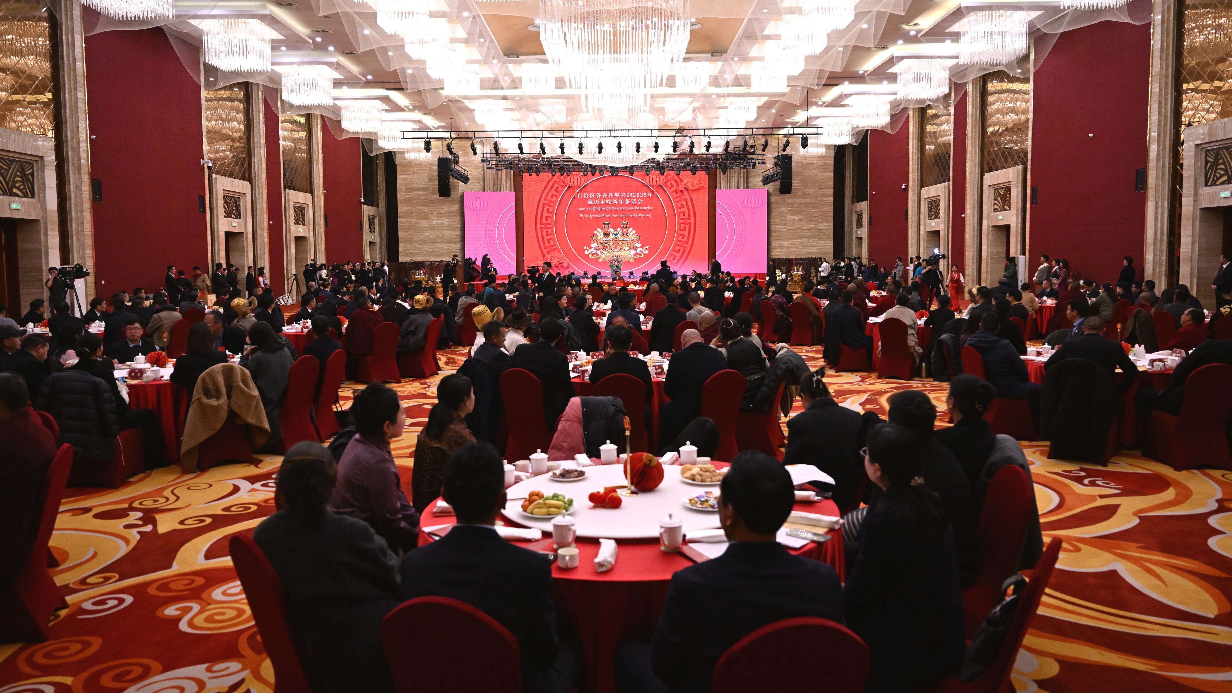 近日,西藏自治區(qū)各族各界喜迎2025年藏歷木蛇新年茶話會(huì)在拉薩舉行。這是茶話會(huì)現(xiàn)場(chǎng)。記者 旦增西旦 攝