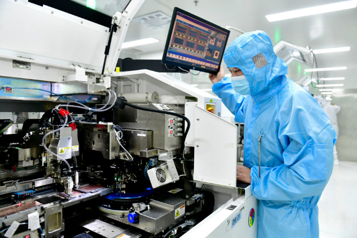 2025年2月13日,山東立國(guó)芯微電子有限公司工作人員在芯片生產(chǎn)線(xiàn)上工作。新華社記者 郭緒雷 攝