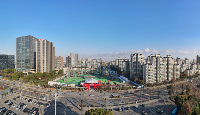2025年1月9日,上海靜安區(qū)2025年第一批重大項(xiàng)目集中開(kāi)工儀式在靈石社區(qū)(自?xún)x廠(chǎng)地塊)項(xiàng)目現(xiàn)場(chǎng)舉行(無(wú)人機(jī)照片)。新華社記者 方喆 攝