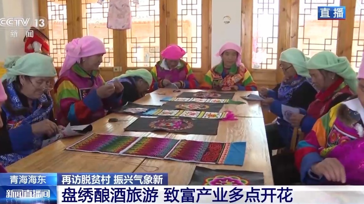 十幾位繡娘正忙著趕制這兩天接到的土族盤繡訂單,這些訂單來自全國多地。土族盤繡是當(dāng)?shù)匾婚T民間傳統(tǒng)刺繡藝術(shù),也是國家級(jí)非物質(zhì)文化遺產(chǎn)。