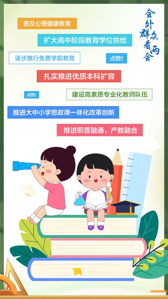 教育事關(guān)每個(gè)家庭。今年的政府工作報(bào)告提出,加快建設(shè)高質(zhì)量教育體系,制定實(shí)施教育強(qiáng)國建設(shè)三年行動(dòng)計(jì)劃……對(duì)于報(bào)告相關(guān)的教育“熱搜話題”,群眾怎么看?
