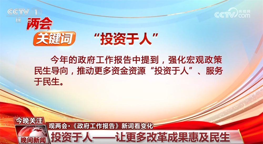 今年的政府工作報告中提到,強(qiáng)化宏觀政策民生導(dǎo)向,推動更多資金資源“投資于人”、服務(wù)于民生。把更多資金資源“投資于人”,就是將資金資源投入人的發(fā)展和保障上,讓更多改革發(fā)展成果直接作用在人身上。報告中,“居民醫(yī)保和基本公共衛(wèi)生服務(wù)經(jīng)費人均財政補(bǔ)助標(biāo)準(zhǔn)分別再提高30元和5元”“城鄉(xiāng)居民基礎(chǔ)養(yǎng)老金最低標(biāo)準(zhǔn)再提高20元”“發(fā)放育兒補(bǔ)貼”等一系列可感可觸的民生福祉,是“投資于人”的具體體現(xiàn)。