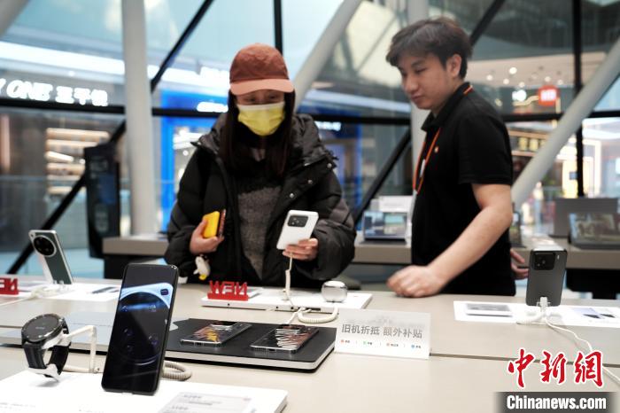 3月5日,消費者在北京一門店選購手機(jī)產(chǎn)品。中新社記者 張祥毅 攝