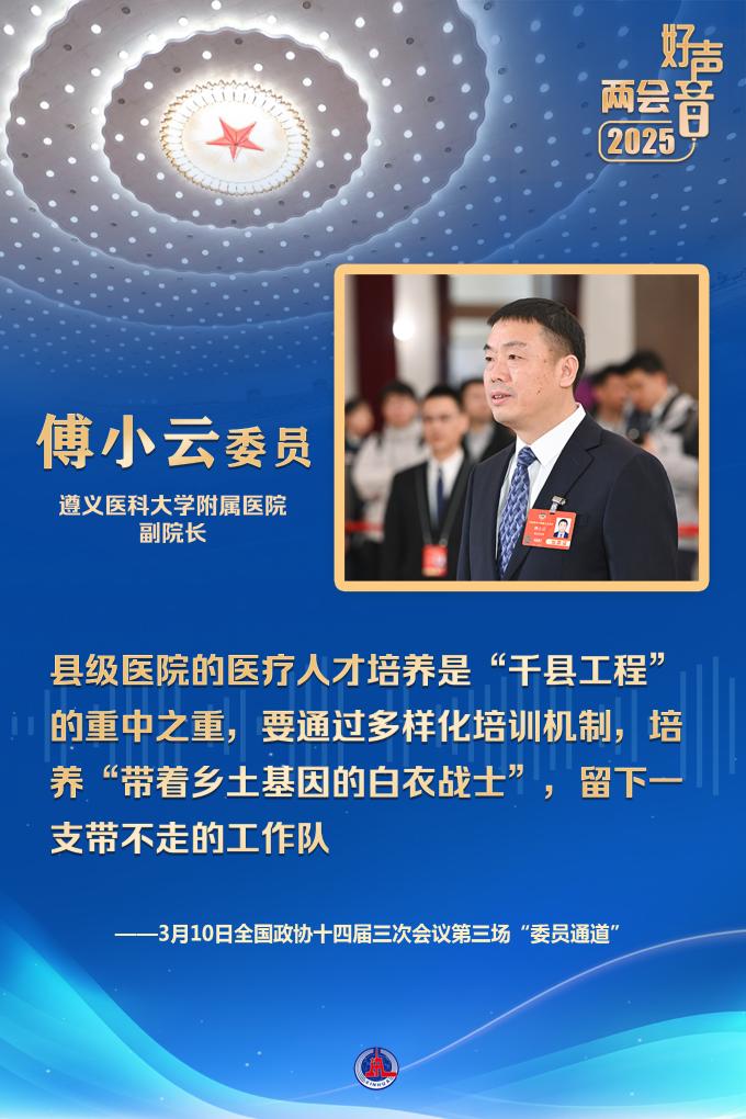 “國家持續(xù)實(shí)施‘千縣工程’,開展醫(yī)療人才‘組團(tuán)式’支援幫扶,支援西藏、新疆、青海等地區(qū)醫(yī)院和國家鄉(xiāng)村振興重點(diǎn)幫扶縣人民醫(yī)院。”遵義醫(yī)科大學(xué)附屬醫(yī)院副院長傅小云委員說。