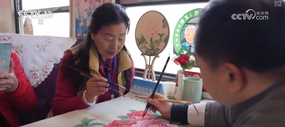 車行期間,列車上安排了豐富的活動(dòng),有歌舞表演、知識(shí)競猜,還可以體驗(yàn)制作膠東花餑餑。此外,書畫創(chuàng)作區(qū)、心理咨詢區(qū)、健康監(jiān)測區(qū)等,也能讓旅客度過既充實(shí)又快樂的“慢時(shí)光”。