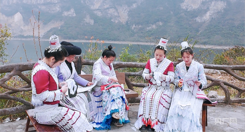 化屋村,原名“化屋基”,意為“懸崖下的村寨”,地處烏江上游六沖河河畔。整個村子被險(xiǎn)峻的群山和河水環(huán)繞,過去因交通閉塞、產(chǎn)業(yè)缺乏,陷入深度貧困,當(dāng)?shù)貍鹘y(tǒng)特色手藝——化屋苗繡也是“藏在深閨人未識”。