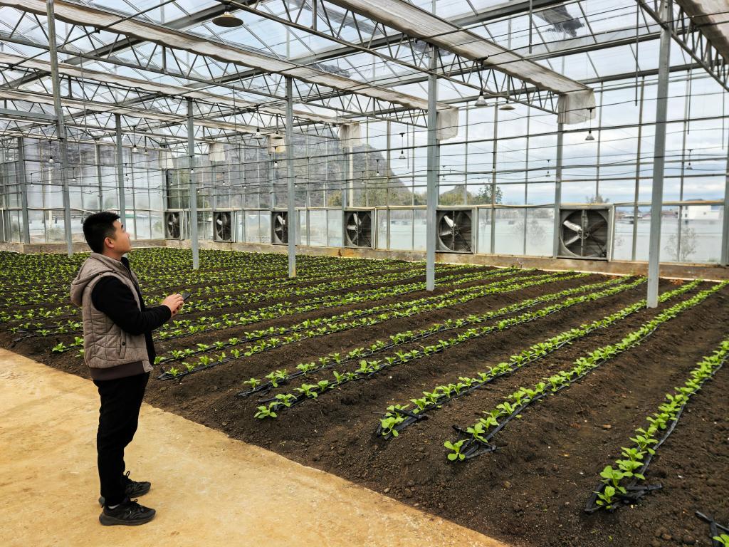 在廣西賀州市平桂區(qū)國(guó)家現(xiàn)代農(nóng)業(yè)產(chǎn)業(yè)園品種篩選適應(yīng)棚內(nèi),技術(shù)人員陳愈璋輕觸手機(jī),蔬菜大棚的內(nèi)遮陽(yáng)網(wǎng)緩緩開(kāi)啟?!霸绱簳r(shí)節(jié)氣溫波動(dòng)較大,有了物聯(lián)網(wǎng)技術(shù),可以隨時(shí)調(diào)整遮陽(yáng)網(wǎng)開(kāi)合,效率提高了很多。”陳愈璋說(shuō)。