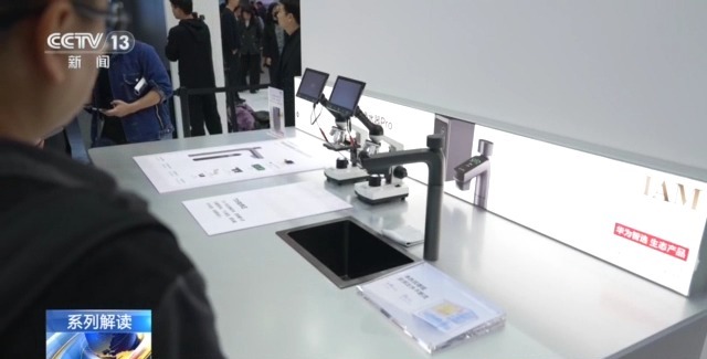 展館里AI賦能無處不在,就連不起眼的水龍頭,也應(yīng)用了人工智能技術(shù)。