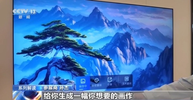 參展商 孫杰:只要說出你想要的畫面內(nèi)容,它就會很短的時(shí)間給你生出一幅你想要的畫作。既可以作為自己的畫作在電視上欣賞,也可以通過微信掃碼復(fù)制到電腦手機(jī)上作為桌面。