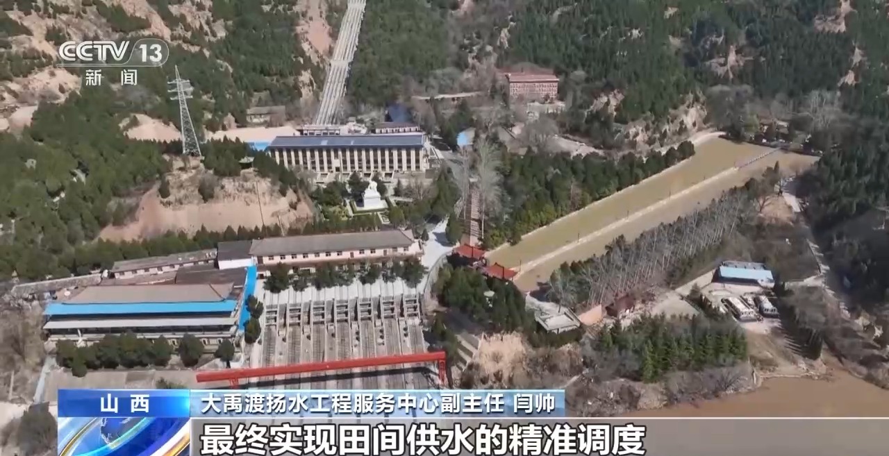 大禹渡灌區(qū)緊鄰黃河,經(jīng)過6級提水,黃河水最終爬升346米,沿著管道一路泵入總干渠。經(jīng)總干渠分水后,河水繼續(xù)分流至灌區(qū)465條干、支、斗渠,精準(zhǔn)流入農(nóng)田。村民們不僅能用手機(jī)下單水票,還能看到閘口的用水情況,讓每一滴流入農(nóng)田的水都流得明明白白。