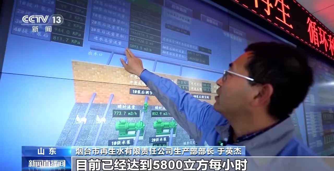 煙臺市再生水有限責(zé)任公司生產(chǎn)部部長 于英杰:萬華工業(yè)園區(qū)供水的實(shí)時(shí)流量顯示,目前已經(jīng)達(dá)到5800立方/小時(shí),全天累計(jì)14.5萬立方。