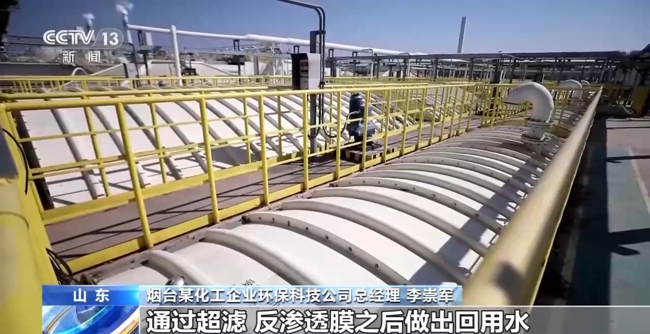 煙臺某化工企業(yè)環(huán)保科技公司總經(jīng)理 李崇軍:我們的污水處理廠最開始設(shè)計(jì)的時(shí)候就采用了污污分治、清污分治的一些策略,包括物化、生化、高級氧化的一些工藝,最后全部送到我們的回用水車間,通過超濾、反滲透膜之后做出回用水,再送回園區(qū)使用。