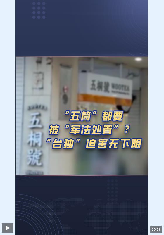 最近一段時間,民進黨當(dāng)局打壓迫害島內(nèi)支持兩岸和平發(fā)展人士的行為,已經(jīng)到了喪心病狂的地步,甚至有家奶茶店因為叫“五桐號”,而被綠營抵制說是在諧音“武統(tǒng)好”,難怪有人諷刺:如今的臺灣,打麻將說“五筒”都會被“軍法處置”。有島內(nèi)輿論指出,賴清德違逆民意拋出“17項策略”,是“戒嚴(yán)再起、‘臺獨’叫陣”,是“綠色恐怖執(zhí)政”。臺灣社會各界也紛紛表達(dá)不滿: