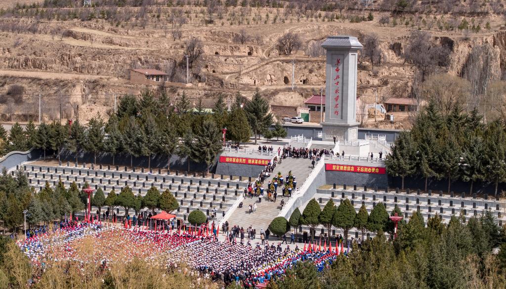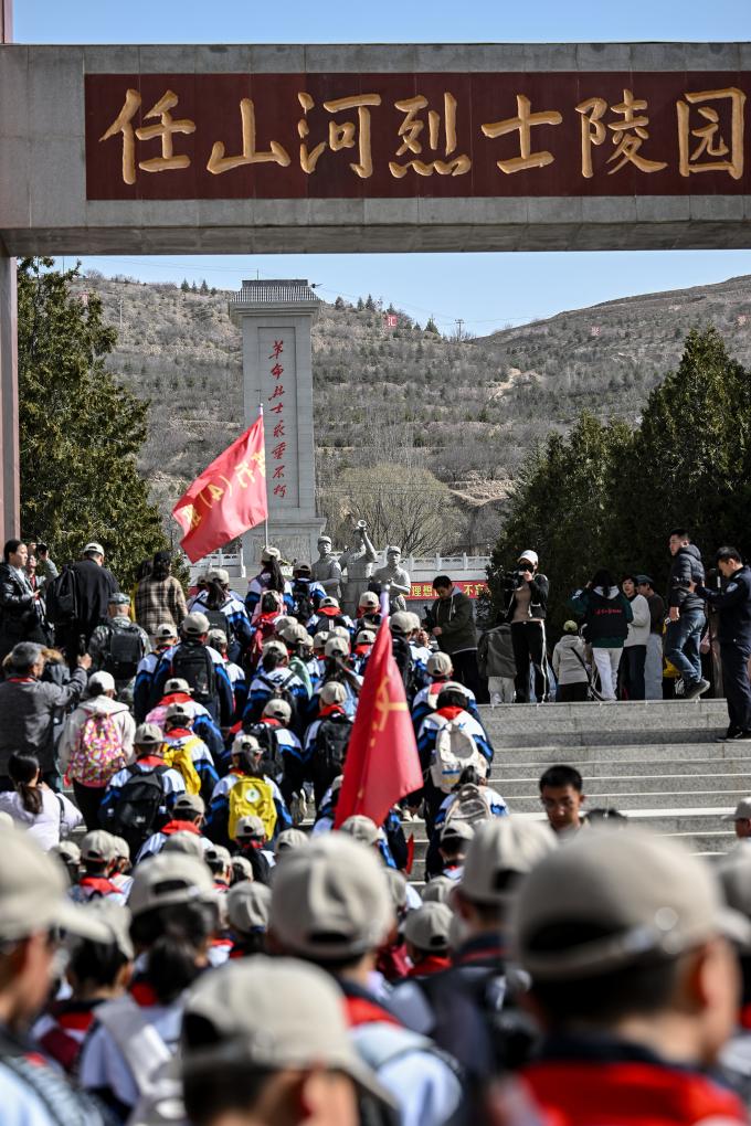 4月3日,參加徒步祭英烈活動的師生抵達(dá)位于彭陽縣的任山河烈士陵園。