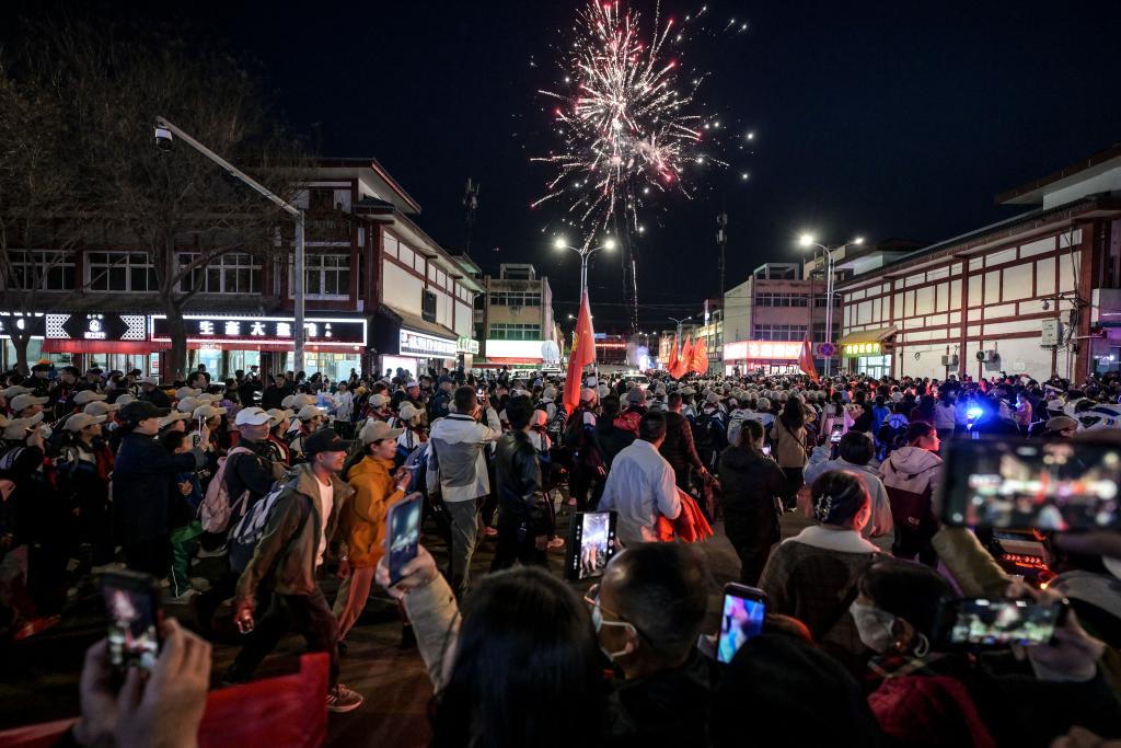 4月3日晚上8點(diǎn)左右,學(xué)生結(jié)束徒步返回校園,家長和市民熱情迎接。
