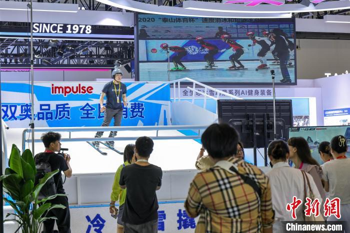 4月11日,第五屆中國國際消費品博覽會即將開展,企業(yè)推出具有AI功能的滑雪模擬機。中新社記者 駱云飛 攝