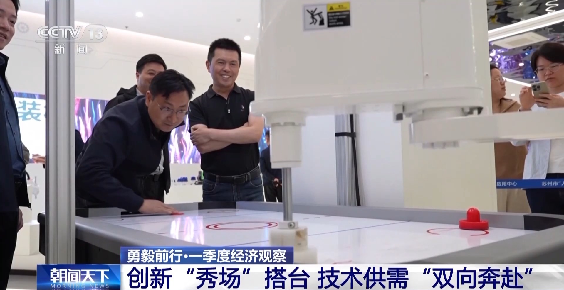 記者來(lái)到蘇州市“人工智能+制造業(yè)”創(chuàng)新應(yīng)用中心,正好趕上不少人前來(lái)參觀學(xué)習(xí)。