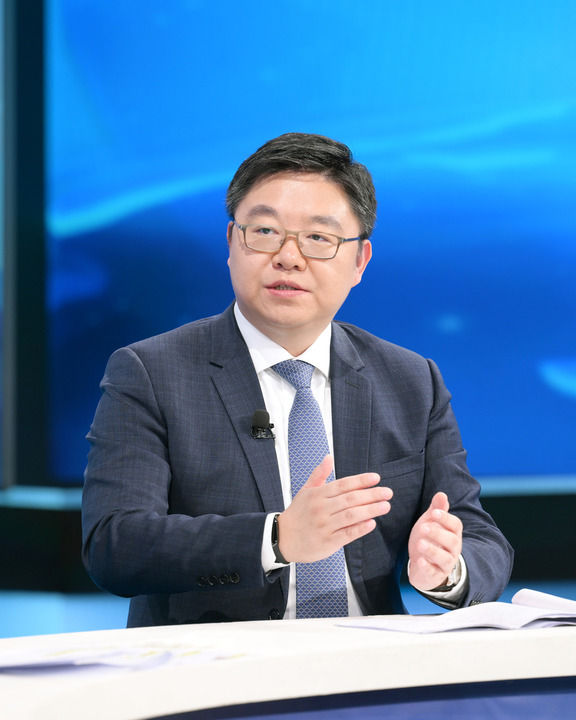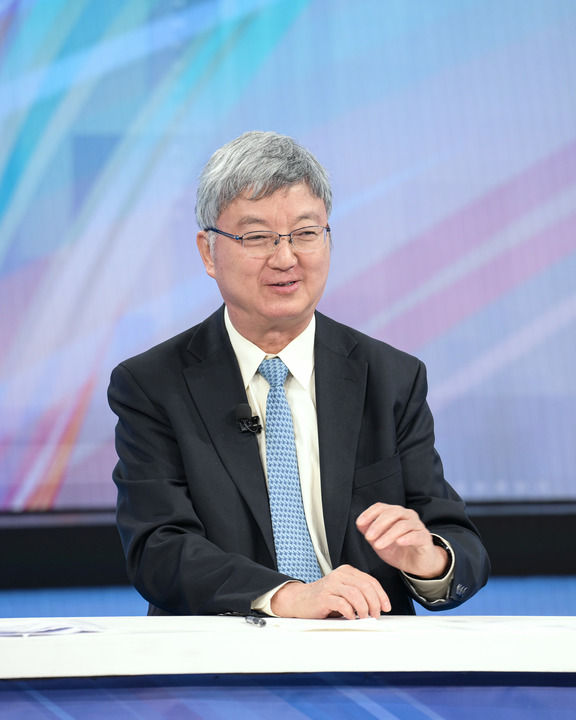 中國國際經(jīng)濟交流中心資深專家委員朱民在第十五期“中國經(jīng)濟圓桌會”錄制現(xiàn)場發(fā)言。新華社記者 李賀 攝