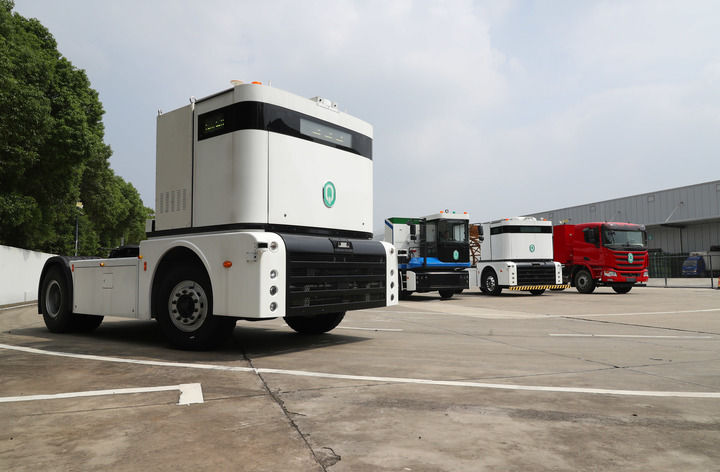 2023年9月26日,一輛西井科技的無人駕駛重卡Q-Truck(前)在位于上海的無人駕駛商用車聯(lián)合實驗室場地上進行動態(tài)測試。新華社記者 方喆 攝