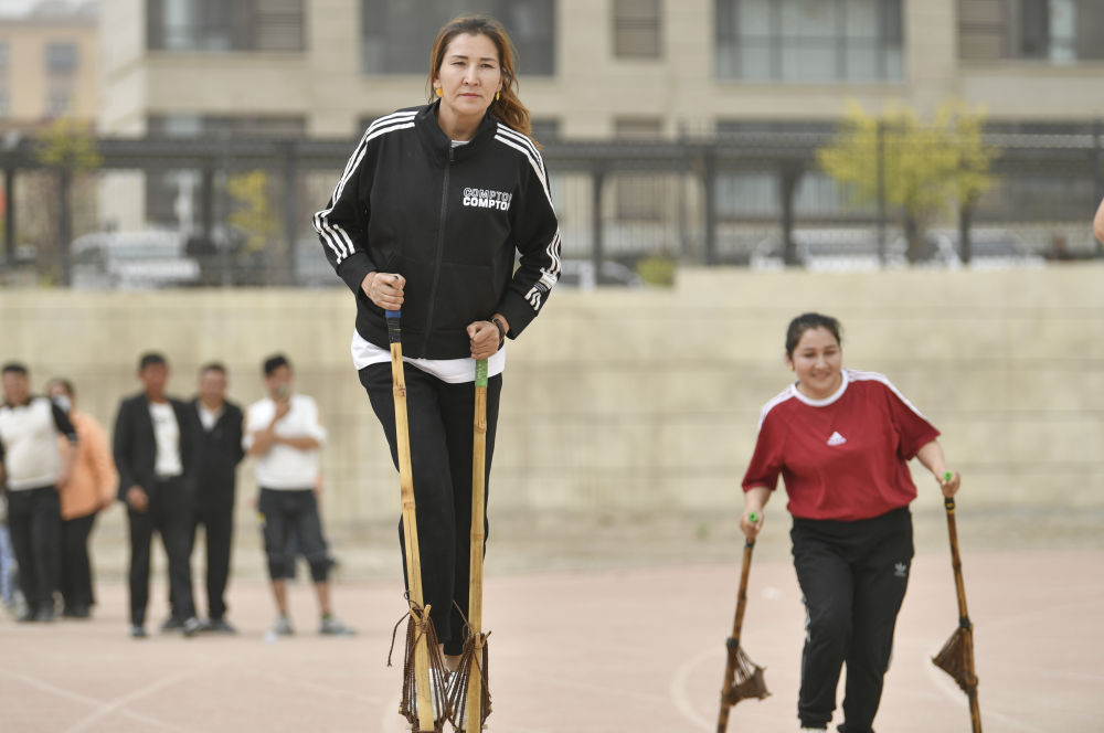 從上學(xué)時(shí),柔鮮古麗就熱衷于參與各項(xiàng)體育活動(dòng)。無(wú)論是籃球、排球還是最擅長(zhǎng)的高腳競(jìng)速,她總會(huì)擠出時(shí)間報(bào)名參賽。她說(shuō),體育就像一道光,多年來(lái)照亮了大漠邊緣的生活?!八粌H可以鍛煉身體,也能舒緩我在生活中遇到的壓力?!?/p>