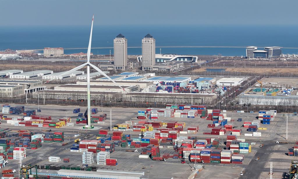 2024年3月20日拍攝的天津自貿(mào)試驗區(qū)東疆片區(qū)一景(無人機(jī)照片)。新華社記者趙子碩 攝