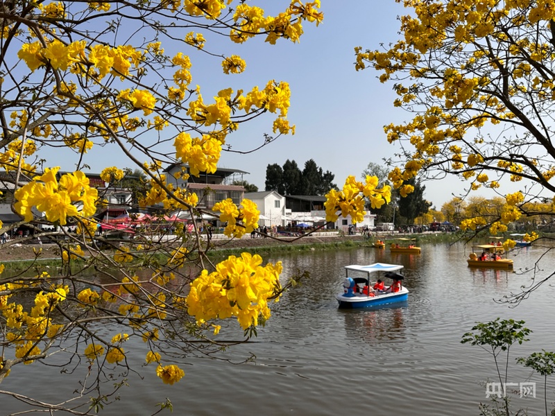 四月芳菲盛,踏青正當時。近日,四川省簡陽市東麓花溪的千畝黃花風(fēng)鈴木迎來盛花期,金黃花海不僅吸引八方游客紛至沓來,更催生出多元消費新場景,讓“鮮花經(jīng)濟”綻放出獨特魅力。