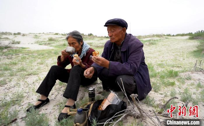 付志周帶著妻子從撿樹枝插栽開始,與風沙“死磕”。(資料圖)和靜縣融媒體中心供圖