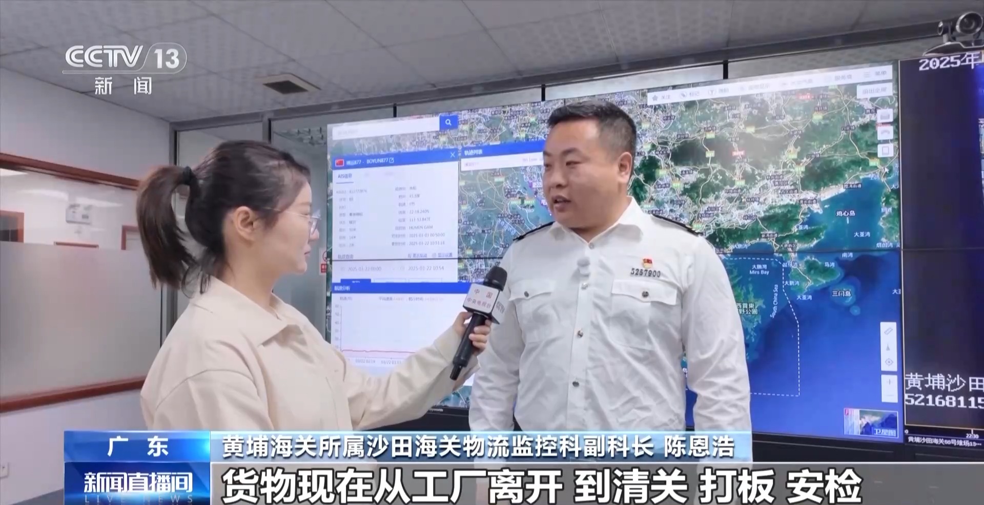 黃埔海關(guān)所屬沙田海關(guān)物流監(jiān)控科副科長 陳恩浩:貨物現(xiàn)在從工廠離開,到清關(guān)、打板、安檢、裝船以及發(fā)運整個環(huán)節(jié),最快可以在14個小時內(nèi)完成。我們還在不斷優(yōu)化流程、提高效率,未來預計還可以節(jié)約2到3小時。