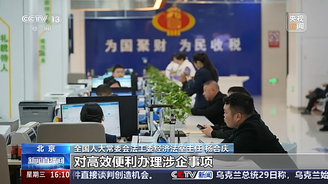 全國(guó)人大常委會(huì)法工委經(jīng)濟(jì)法室主任 楊合慶:強(qiáng)化行政執(zhí)法監(jiān)督,堅(jiān)決遏制“亂收費(fèi)、亂罰款、亂檢查、亂查封”等行為,對(duì)高效便利辦理涉企事項(xiàng)、完善人才激勵(lì)政策、健全信用修復(fù)制度、健全糾紛多元化解機(jī)制、發(fā)揮行業(yè)協(xié)會(huì)商會(huì)作用、加強(qiáng)海外綜合服務(wù)和權(quán)益保護(hù)等作出規(guī)定。