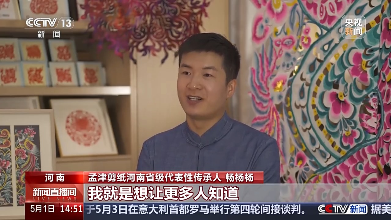 孟津剪紙河南省級(jí)代表性傳承人 暢楊楊:傳統(tǒng)的技藝是我們的根,是我們的魂。作為一名剪紙非遺代表性傳承人,我希望它能夠一直流傳下去,在不同時(shí)代綻放出不同的美。