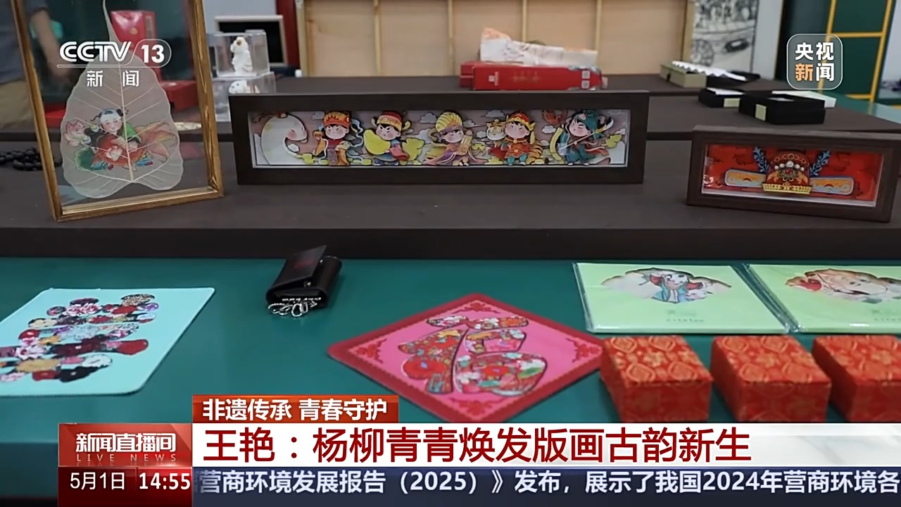 王艷在“老版復(fù)生”過(guò)程中,拆解傳統(tǒng)技法,比如畫訣中短胳膊短腿是多短?小鼻子大眼睛的比例怎樣會(huì)更好?她一一詳細(xì)記錄,貢獻(xiàn)了青年傳承人的“新民間經(jīng)驗(yàn)”。如今,古版年畫中的楊柳青元素也被開發(fā)成各式新潮的文創(chuàng)產(chǎn)品,“過(guò)年才貼的畫”變成了“身邊常見(jiàn)的畫”,讓年輕的消費(fèi)者愛(ài)不釋手。