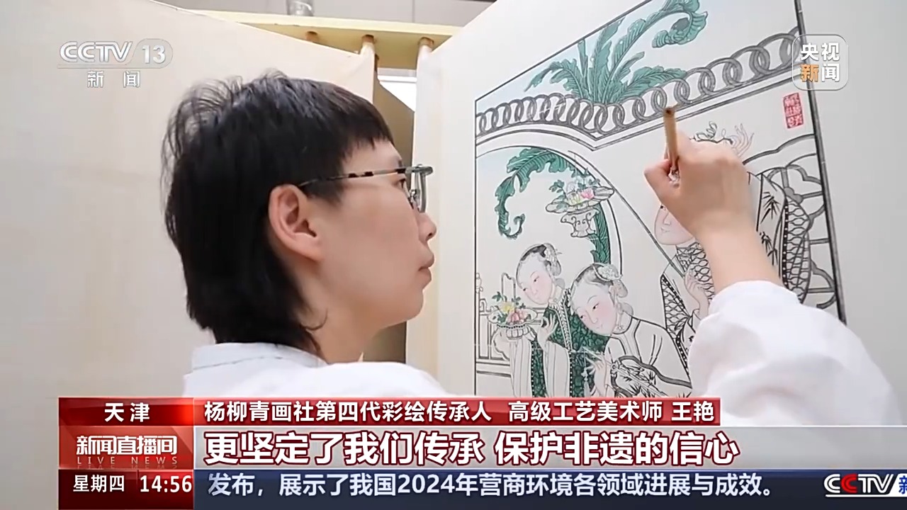 楊柳青畫社第四代彩繪傳承人、高級(jí)工藝美術(shù)師 王艷:人們的喜愛(ài),讓我收獲了更多的文化認(rèn)同感,更堅(jiān)定了我們傳承、保護(hù)非遺的信心,希望我們可以創(chuàng)作出更多具有這個(gè)時(shí)代屬性的新年畫。