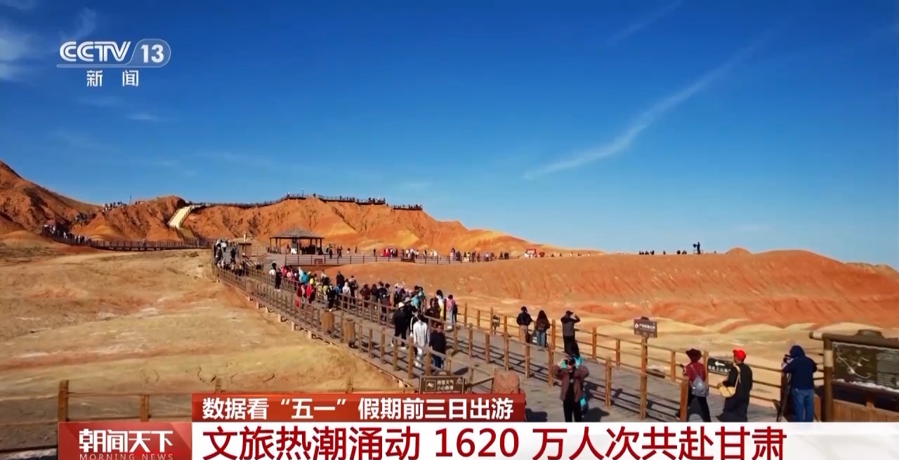 據(jù)甘肅省文旅廳統(tǒng)計,昨天(5月3日),甘肅共接待游客660萬人次,較2024年同期增長5.4%?!拔逡弧奔倨谇?天,全省累計接待游客達1620萬人次,較2024年同期增長6.86%,文旅市場熱度持續(xù)攀升。