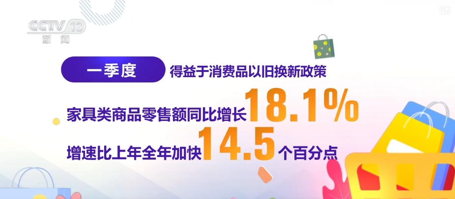 其中,得益于消費品以舊換新政策,家具類商品零售額同比增長18.1%,增速比上年全年加快14.5個百分點。