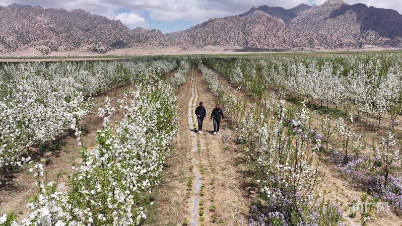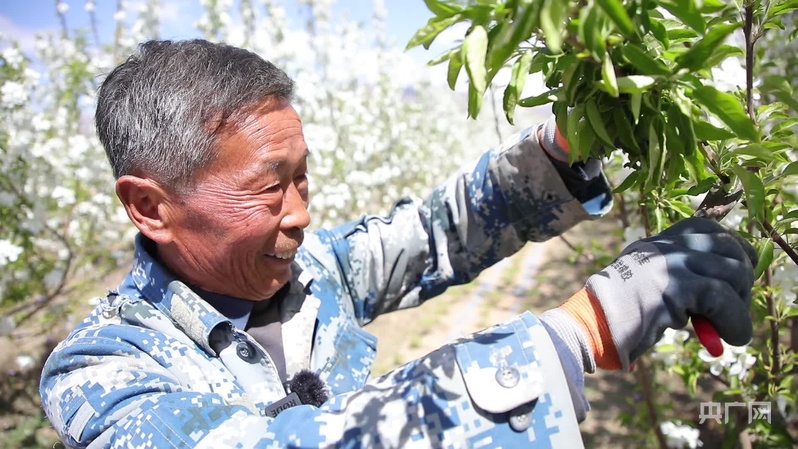 步入內(nèi)蒙古巴彥淖爾市烏拉特前旗白彥花鎮(zhèn)塔漢其嘎查林果產(chǎn)業(yè)園,大片果樹(shù)迎來(lái)最美花期,微風(fēng)拂過(guò),花香沁人心脾,果園里村民高忠標(biāo)正專注地修剪著果樹(shù)?!拔医衲?0多歲了,在這里打工五六年了,一個(gè)月能掙五六千塊錢,挺好的?!?/p>