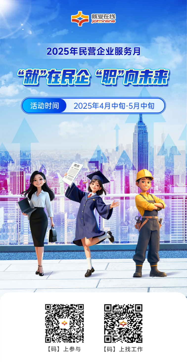 為支持民營經(jīng)濟(jì)發(fā)展,促進(jìn)高質(zhì)量充分就業(yè),按照人力資源社會保障部等6部門關(guān)于開展2025年民營企業(yè)服務(wù)月活動安排,“就業(yè)在線”平臺開展2025年民營企業(yè)服務(wù)月線上招聘求職服務(wù)活動,助力民營企業(yè)招聘用工和廣大勞動者求職就業(yè)。