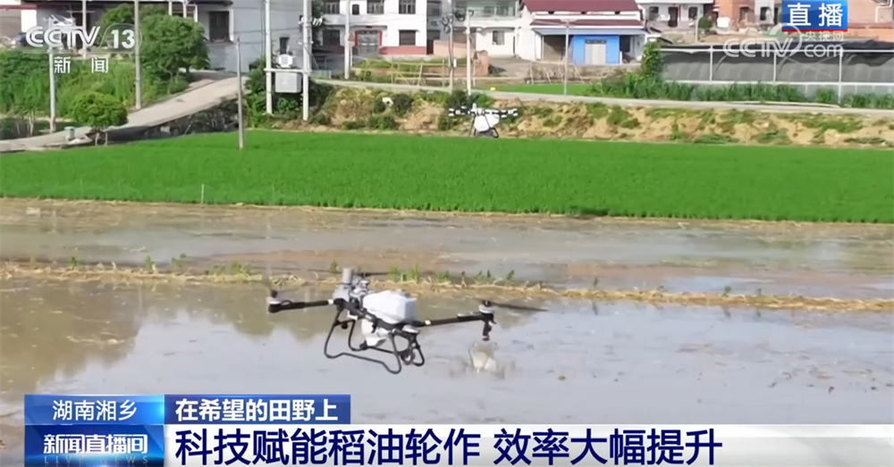 在這個階段,還有一件非常重要的工作就是施肥。眼下,施肥已經(jīng)很少依靠人工了。現(xiàn)場,大型的農(nóng)業(yè)無人機(jī)正在作業(yè),肥料均勻灑在田里。無人機(jī)還能做到自動避障、自動調(diào)節(jié)噴灑量,配備光譜儀還可以檢測莊稼的長勢,作業(yè)1畝地只需要不到20秒。