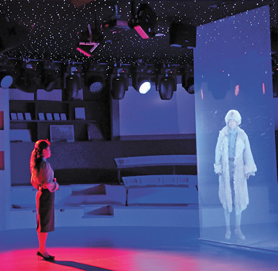 《百日戰(zhàn)斗檔案 不朽民族氣節(jié)》授課教師與楊靖宇A(yù)I形象隔空對(duì)話。孫曉亮攝