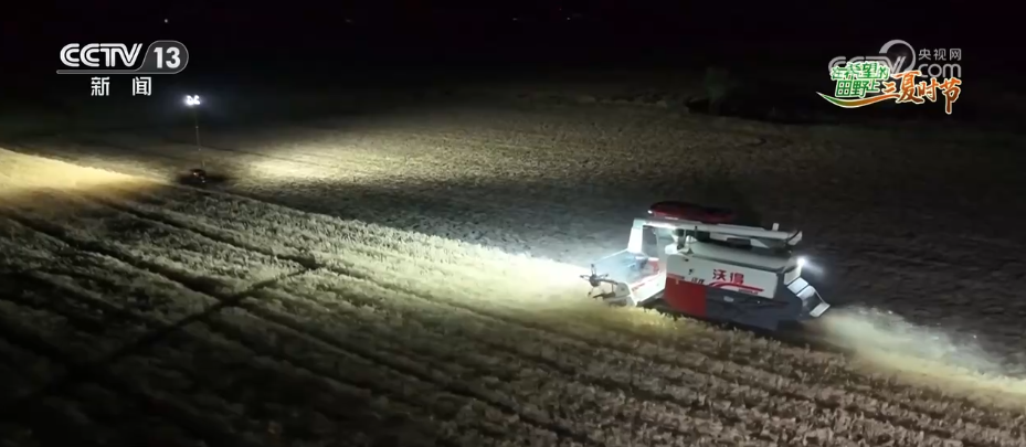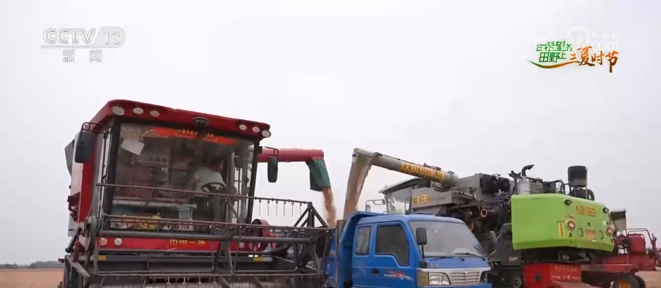 在河南南陽鄧州構(gòu)林鎮(zhèn)這處麥田,金黃的麥浪層層鋪開,麥穗 在陽光下熠熠生輝。4臺(tái)聯(lián)合收割機(jī)開足馬力穿梭在麥田間,伴隨著機(jī)器的轟鳴聲,成熟的小麥被快速收割、脫粒,金黃的麥粒從收割機(jī)的出糧口傾瀉而出,裝入一旁的運(yùn)輸車輛。