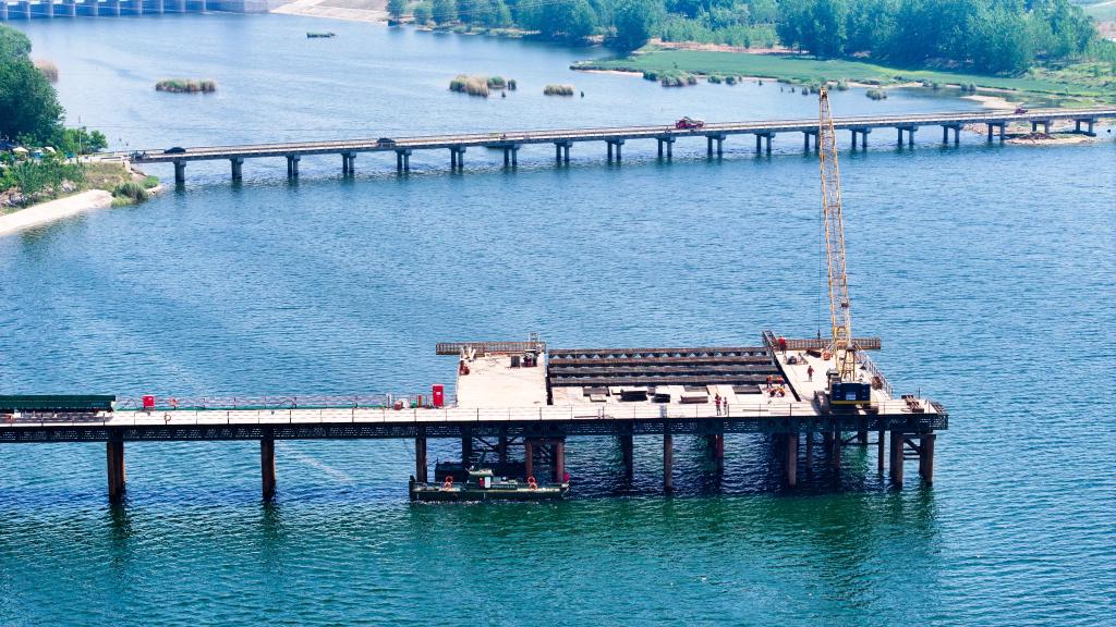 國(guó)家重點(diǎn)項(xiàng)目濰(坊)宿(遷)高速鐵路項(xiàng)目承建方正搶抓工期與節(jié)點(diǎn),穩(wěn)步推進(jìn)標(biāo)段施工。4月30日,在濰宿高鐵山東郯城段,中鐵上海局的工作人員在進(jìn)行沭河特大橋施工(無人機(jī)照片)。新華社記者 郭緒雷 攝