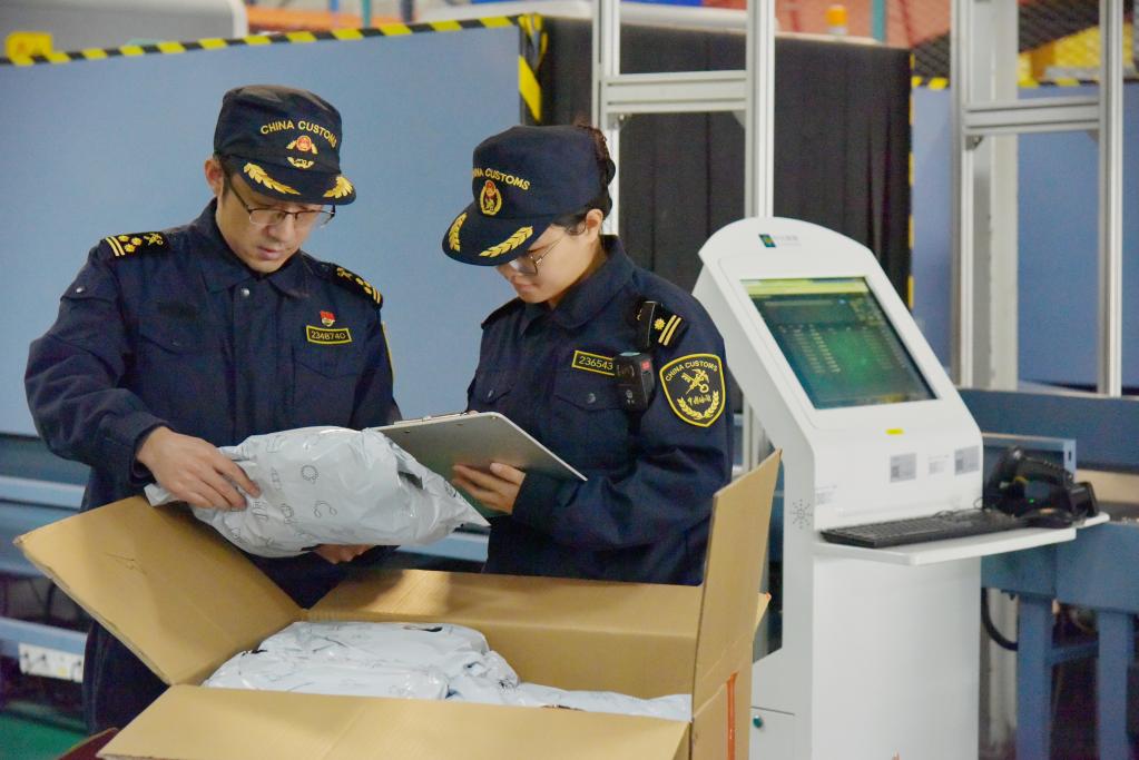 無錫海關(guān)關(guān)員對運(yùn)往墨西哥的跨境電商商品進(jìn)行查驗(yàn)(2024年12月26日攝)。新華社發(fā)
