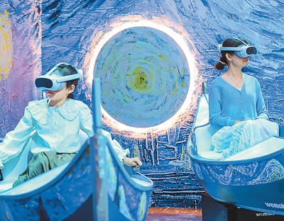 4月20日,游客在山東青島世博園XR梵高數(shù)字藝術(shù)體驗館進行數(shù)字產(chǎn)品體驗。張 鷹攝(人民視覺)