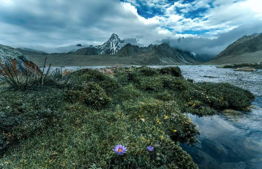 第二天一早,我們繼續(xù)向山脈的腹地去探索,前往冷布崗日腹地的道路也是無人踏足的,沒有正規(guī)車道的,所以我們同樣只能沿著牧民留下的車轍印前行。在一望無際的高原上,我們找不到路的時候就操縱無人機升空去探索路線。經(jīng)過了一整天的艱難探索,終于抵達了目的地,這個地方再往上走是完全沒有路了。在海拔約5800米左右的這個地方,不僅有巍峨壯美的雪山,還長著很多這種獨特的高山苔蘚,這種植被通常只分布在海拔4000米以上的地區(qū),極具地域特色。所以在拍攝時,我將這些高原特有的植被作為前景,既展現(xiàn)了高原生態(tài)風貌,也作為海拔高度的天然標識,然后遠處雄偉的冷布崗日雪山則構成了畫面的核心部分。