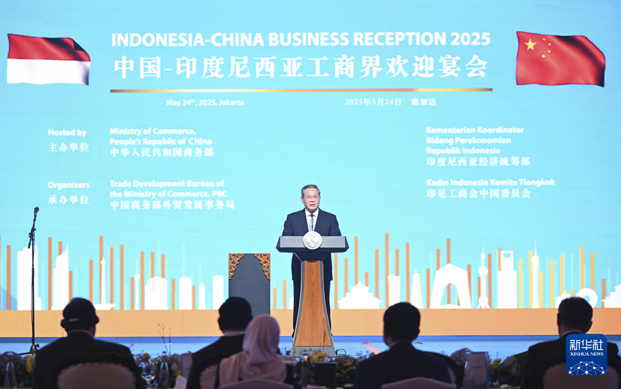 當(dāng)?shù)貢r(shí)間5月24日晚,國(guó)務(wù)院總理李強(qiáng)在雅加達(dá)同印度尼西亞總統(tǒng)普拉博沃共同出席中國(guó)-印尼工商界晚宴并致辭。新華社記者 李響 攝