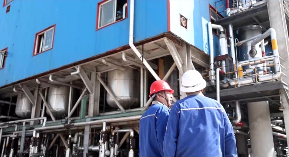 鑫岳化工集團(tuán)的工作人員在廠房前。新華社記者 王歡 攝